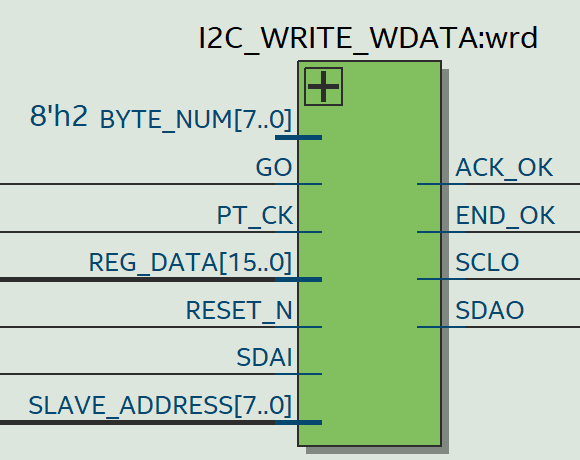 例化了一个I2C_WRITE_WDATA.v模块,将I2C_WRITE_WDATA.v模块的SDAI 和SDAO 之间增加了一个三态缓冲电路,具体原理可参考博客: