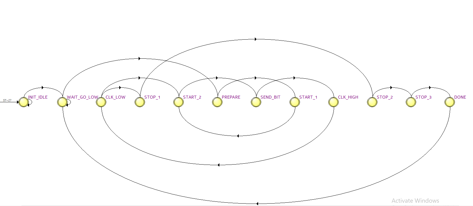 关于状态图里面的 mI2C_ACK 信号, 可以参考下面 I2C_WRITE_WDATA.v 的时序图, 正好每27bit传输完ACK信号就是0了。