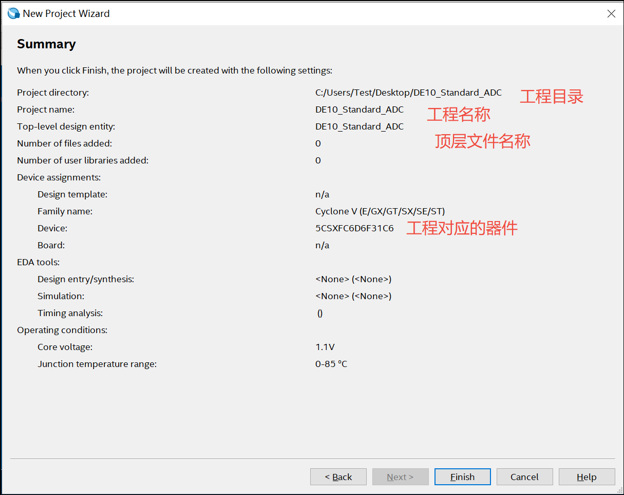 9. 这时候汇总出一个工程创建的报告如下,点击Finish完成工程创建: