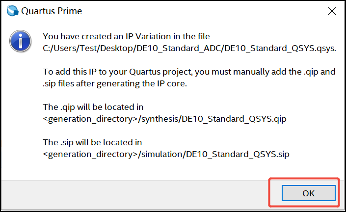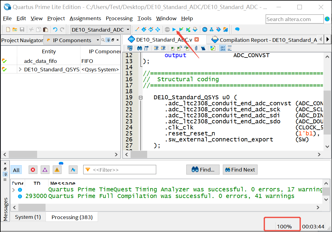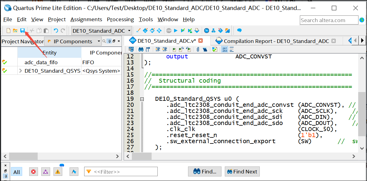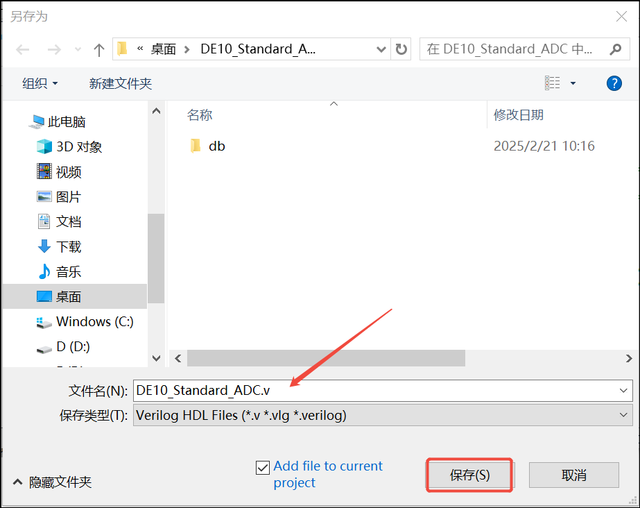 49. 保存时保持文件名称默认是DE10_Standard_ADC:
