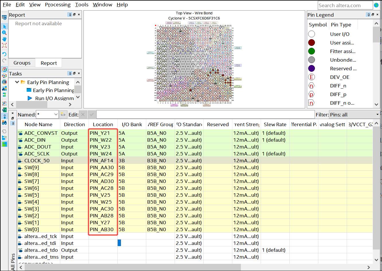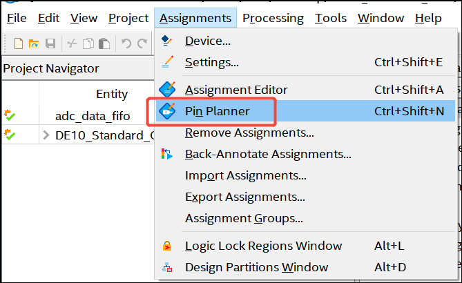 51. 点击Quartus的菜单Assignments——Pin Planner来打开引脚分配的界面: