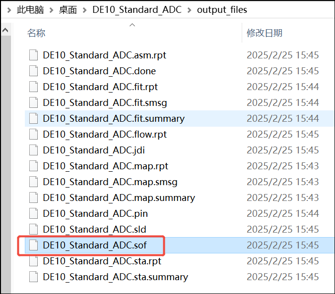 54. 最后在Quartus工程目录下可以看到生成的sof文件: