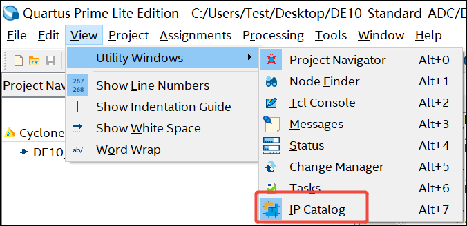 2. 点击View——Utility Windows——IP Catalog打开IP库: