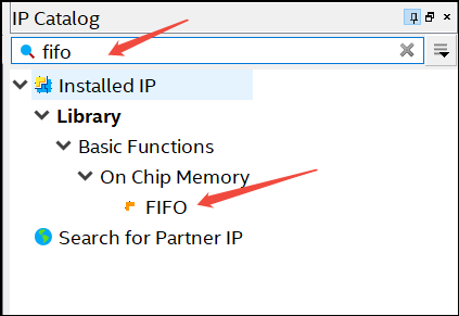 3. 在IP Catalog中键入fifo进行搜索找到FIFO IP,双击它: