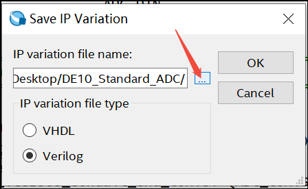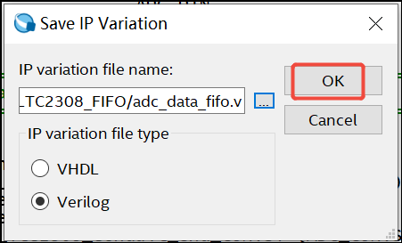 5. 将文件路径设置到你工作目录下~\DE10_Standard_ADC\ip\ADC_LTC2308_FIFO, 给这个FIFO模块命名为adc_data_fifo,然后点击保存: