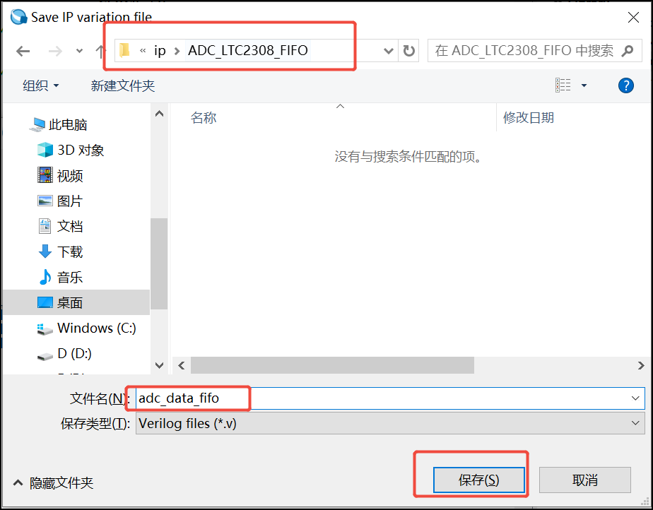 1.提前在你的工程目录下新建一个ip文件夹,然后在ip文件夹下新建一个ADC_LTC2308_FIFO文件夹: