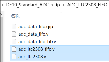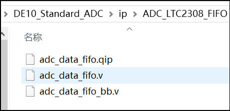11. 这时候可以看到~\DE10_Standard_ADC\ip\ADC_LTC2308_FIFO路径下产生了这些文件: