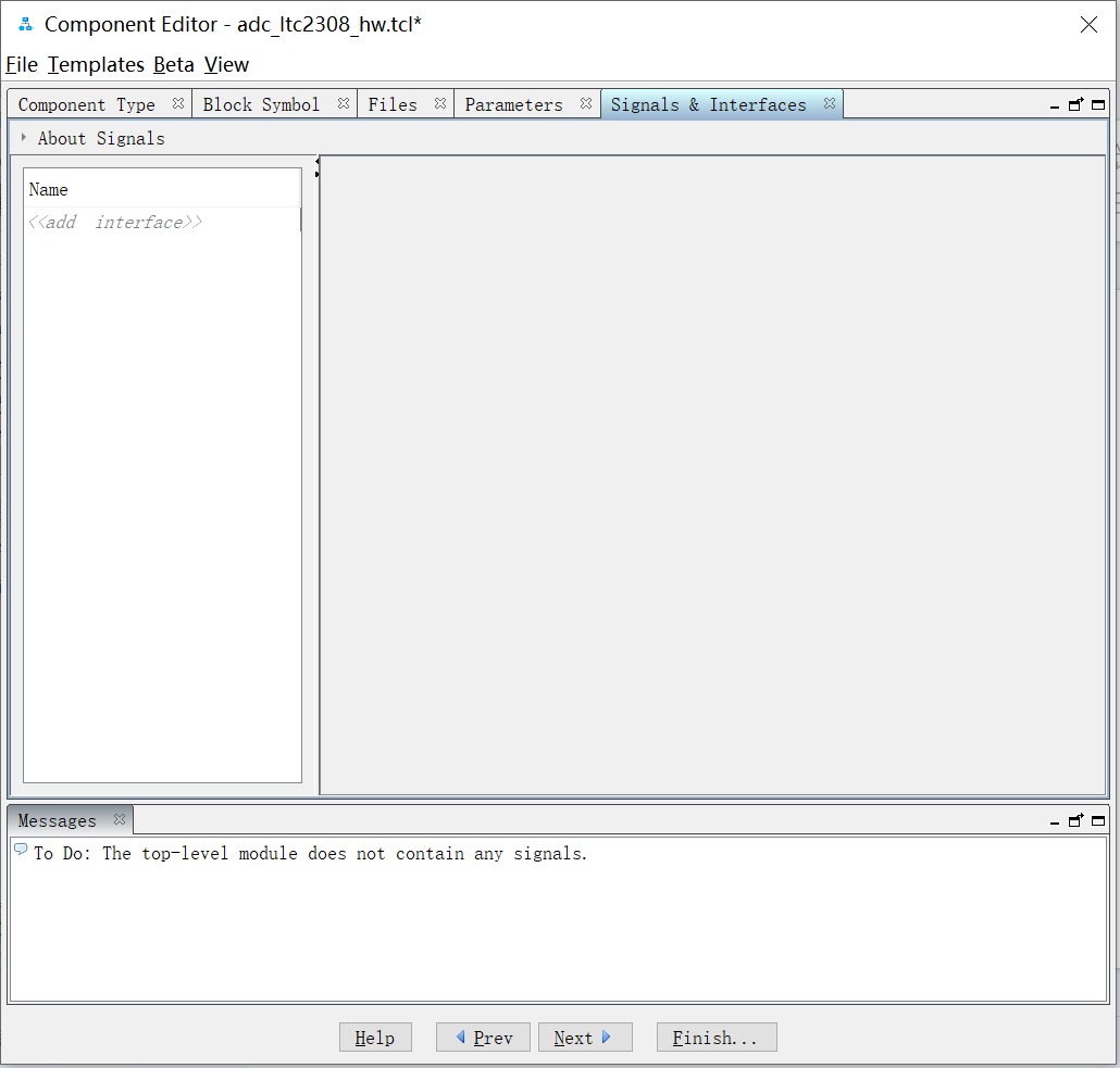 18. 打开Signals&Interfaces可以看到这个窗口还是空白,没有任何端口: