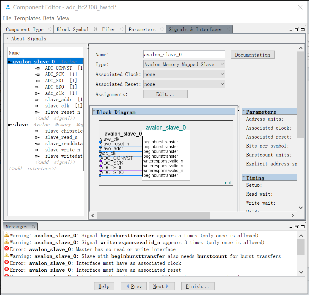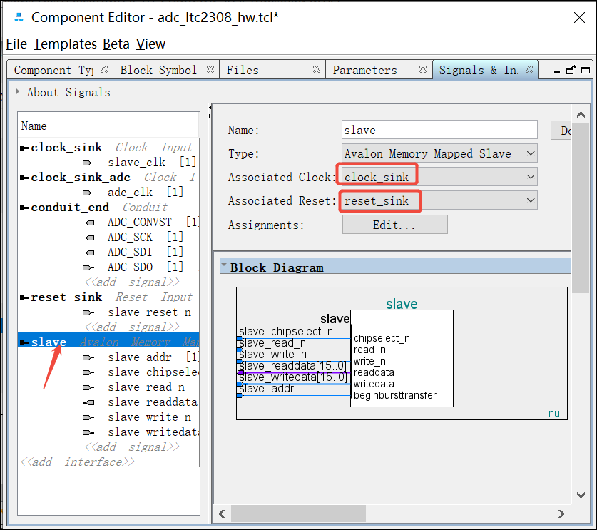 30. 点击slave接口,将Associated Clock设置为clock_sink, 将Associated Reset设置为reset_sink: