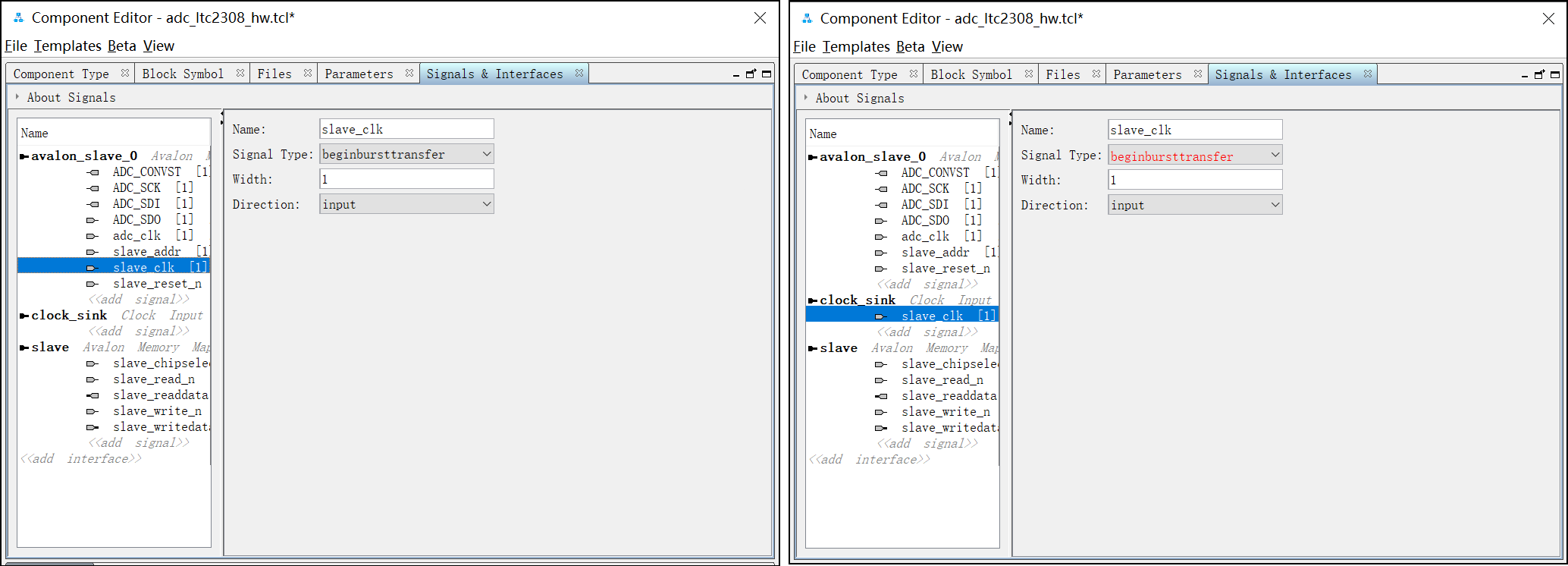 23. slave_clk 信号的Signal Type 处选择clk: