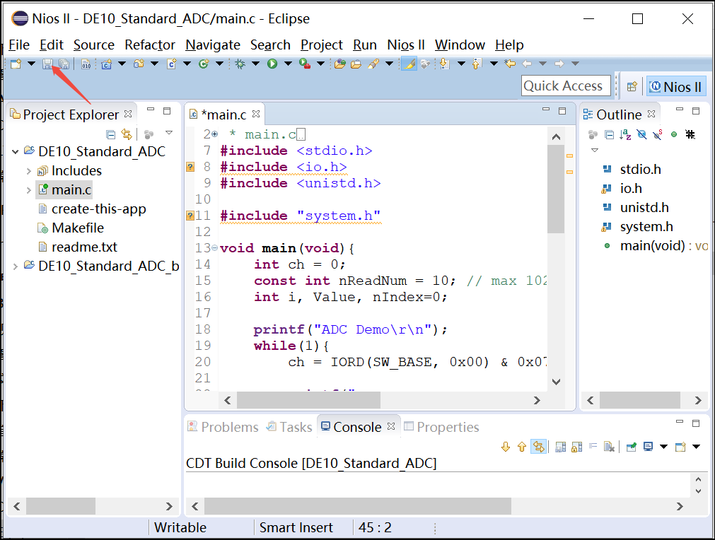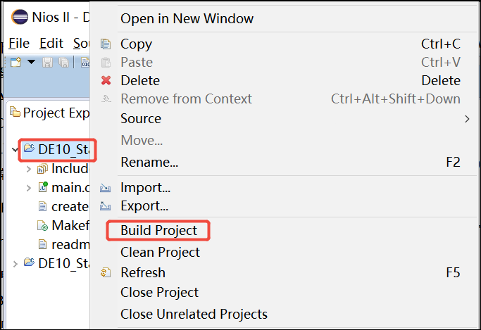 12.右击DE10_Standard_ADC选择Build Project 进行工程编译:
