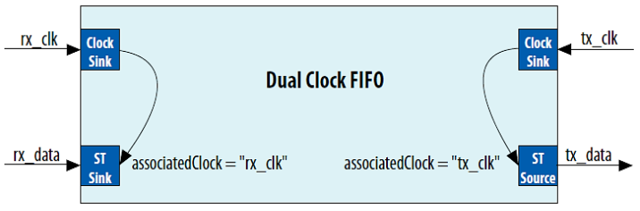 所有同步接口都有一个associatedClock 属性,该属性指定组件上的哪个时钟源(clock source)用作接口的同步参考,如图所示。