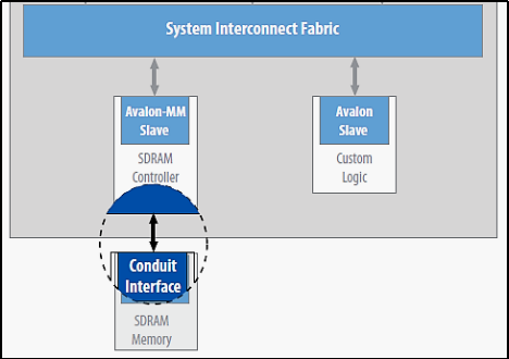 - Avalon Tri-State Conduit Interface (Avalon-TC), Avalon 三态Conduit接口 -- 与片外设备的接口。多个外设可以通过信号的多路复用共享引脚,从而减少FPGA引脚数和PCB走线数。