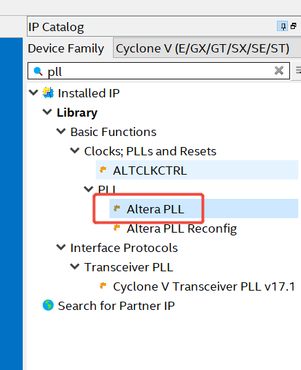 4. 在IP Catalog里面输入PLL,并双击打开Altera PLL IP:
