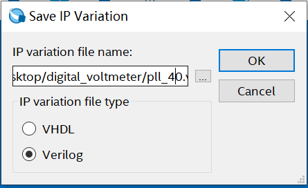 5. 保存路径选择digital_voltmeter工程下,PLL 模块命名为pll_40: