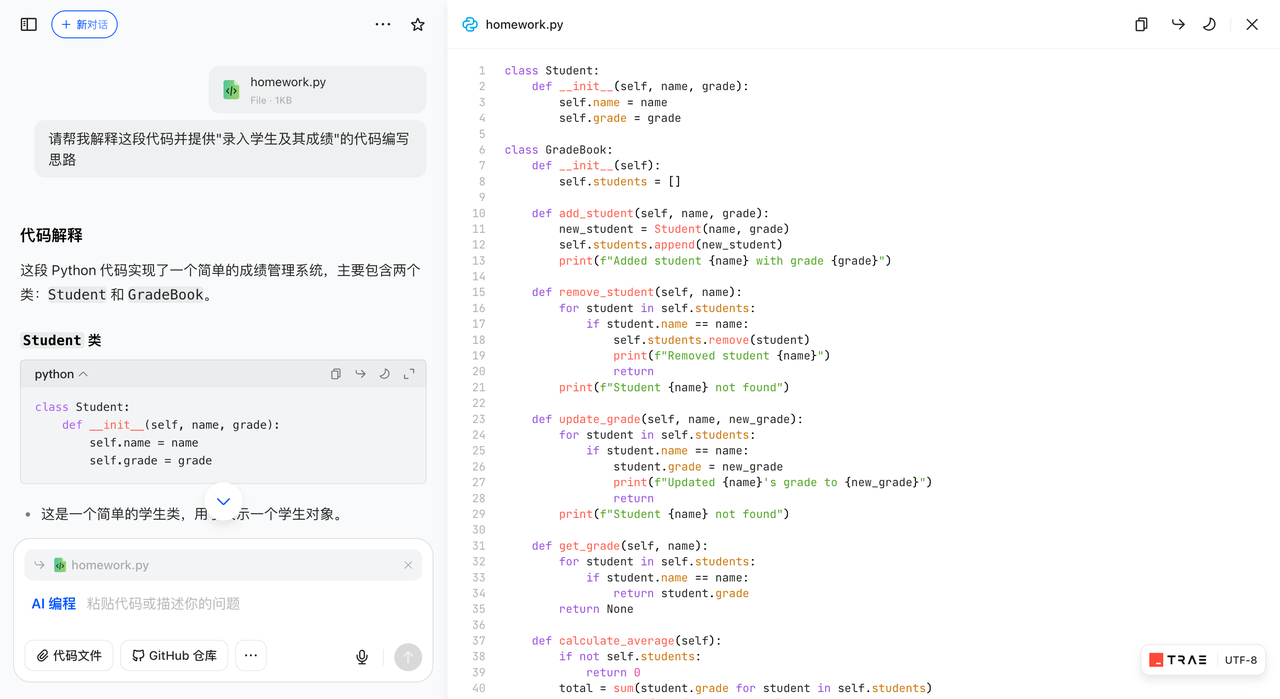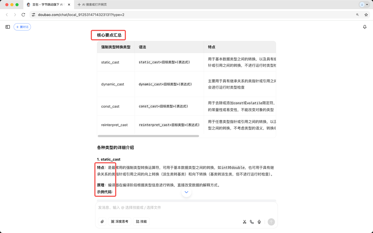豆包可不是只会简单回答问题,它会通过思路讲解 + 代码示例的方式,成为编程路上最好的学习与工作伙伴。