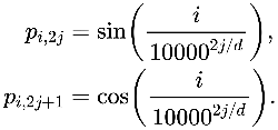 这里i代表一个句子中的一个文字或者单词,j代表的是一个文字或单词编码的位置,一般单词的编码维度是512维,这里分奇偶性,i=256。