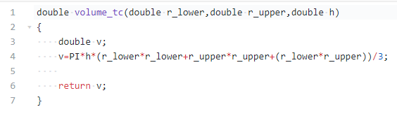 本题要求实现函数求圆台体积,定义并调用函数volume_tc(r_lower, r_upper, h)计算下底半径为r_lower、上底半径为r_upper、高度为h的圆台的体积,函数类型是double。
