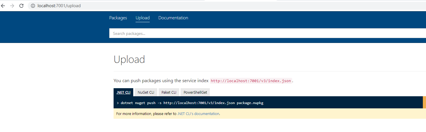 输入>dotnet nuget push -s http://localhost:5000/v3/index.json XXXX1.0.0.nupkg