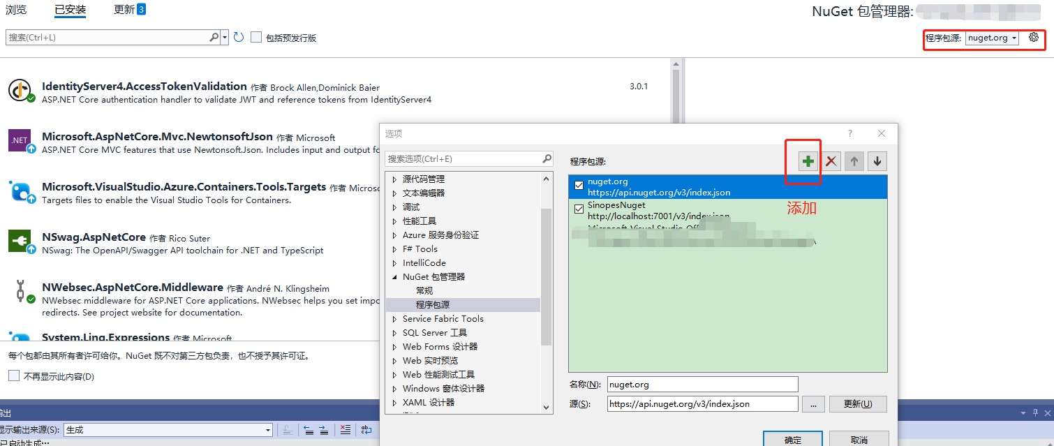 1.项目右键-》管理Nuget程序包-》程序包源设置