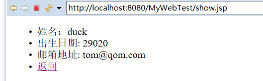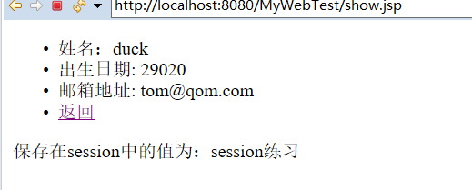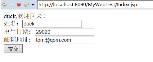 邮箱地址:<input type="text" name="mail" value="<%=info[2]%>"/><br>