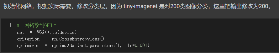 class Net(nn.Module): def __init__(self): super(Net, self).__init__() self.conv1 = nn.Conv2d(3, 6, 5) self.pool = nn.MaxPool2d(2, 2) self.conv2 = nn.Conv2d(6, 16, 5) self.fc1 = nn.Linear(16 * 5 * 5, 120) self.fc2 = nn.Linear(120, 84) self.fc3 = nn.Linear(84, 10) def forward(self, x): x = self.pool(F.relu(self.conv1(x))) x = self.pool(F.relu(self.conv2(x))) x = x.view(-1, 16 * 5 * 5) x = F.relu(self.fc1(x)) x = F.relu(self.fc2(x)) x = self.fc3(x) return x # 网络放到GPU上 net = Net().to(device) criterion = nn.CrossEntropyLoss() optimizer = optim.Adam(net.parameters(), lr=0.001)