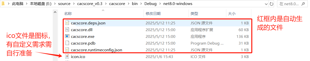 当你使用visualstudio运行代码后,下面的路径会有以下文件,若有自定义程序图标需求,请在这一步放入这个文件夹,图标的文件格式为“.ico”