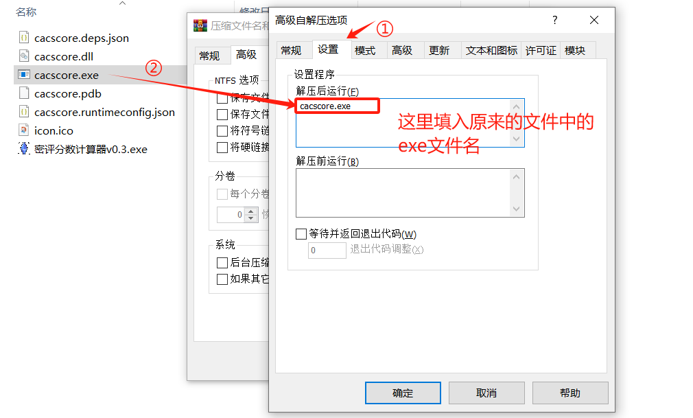 点击“设置”,在“解压后运行”内填入自动生成的文件中后缀为exe的完整文件名
