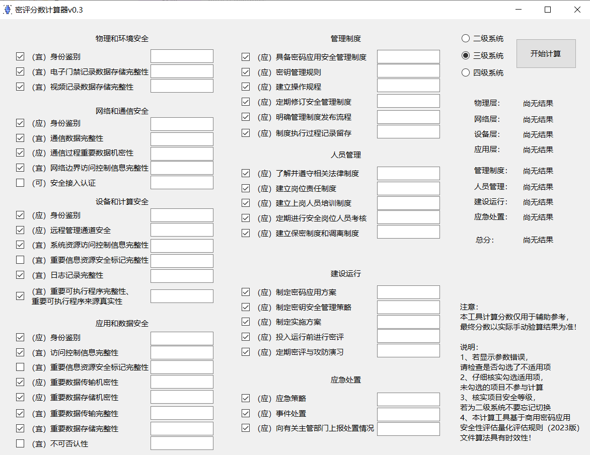 最后展示一下程序,是一个针对商用密码应用与安全性评估的量化分数计算工具,业务逻辑简单清晰,用这种方式进行编写和打包不要太惬意