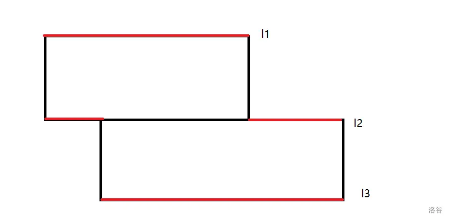 如图,红色的线段是对答案有贡献的横线段,三个坐标对应的覆盖长度为$l_1,l_2,l_3$