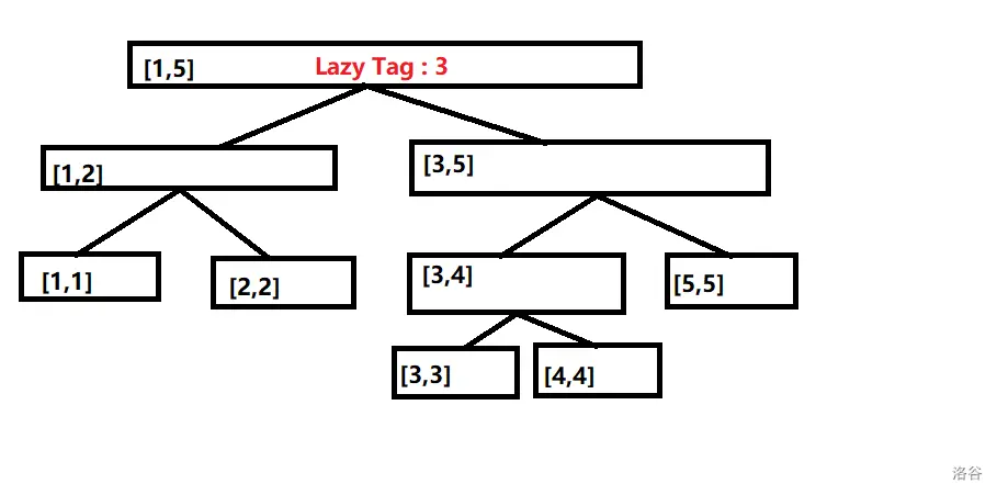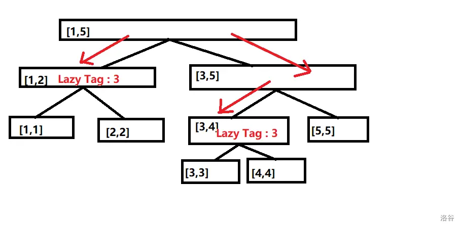 加入现在修改[5.5],那么会将[1,5]的懒标记下放
