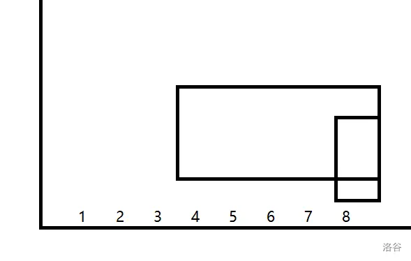 首先先对于两个矩形的下边框都修改后,线段树应该是长成下面这个样子的