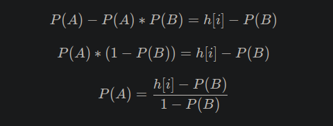 自然是h[j]=h[j]+(P(A)∗p(i,j))−h[j]∗P(A)∗p(i,j)