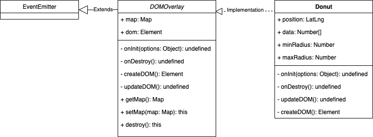 先来看看DOMOverlay的类关系图,这里结合了官网示例DOMOverlay中定义的Donut类作为DOMOverlay的实现: