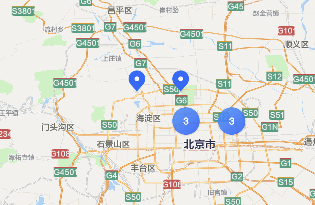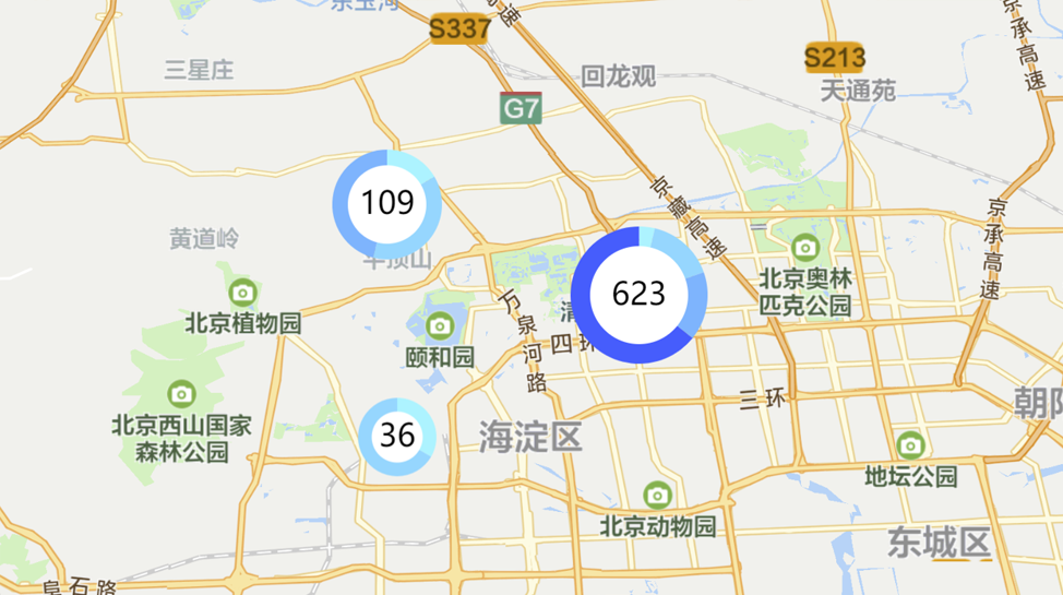 DOMOverlay可以应用在各种图文结合、不易绘制的元素上。 比如使用点聚合接口时,如果想要使用自定义样式,而且需要显示簇大小,就可以使用自定义DOM元素来表达聚合簇。