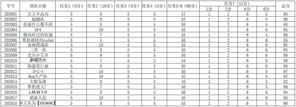 | 作业评分标准 | 按时交(2019-5-9 22:00,以团队随笔博文提交至班级博客的时间为准),根据实验六评分细则打分检查项目包括: (1)任务1部分(5分)。 (2)任务2部分(10分)。 (3)任务3部分(5分)。 (4)任务4部分(5分。 (5)任务5-6部分(60分)。 (6)任务7部分(13分)。 (7)本实验为团队任务,团队成员成绩以团队博文成绩为准。 (8)晚交-0分。 (9)抄袭 - 倒扣本次作业分数。 (9)评分截至日:2020-5-11 22:00。 |
