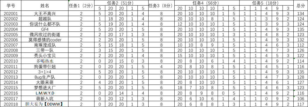 【西北师大-20软工】第四次团队作业成绩汇总