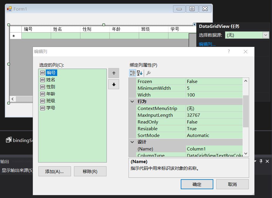第四步中,我们已经把数据库中的数据给到了BinDingsource,然后又赋给了DataGridView。此时我的的Grid有值,但