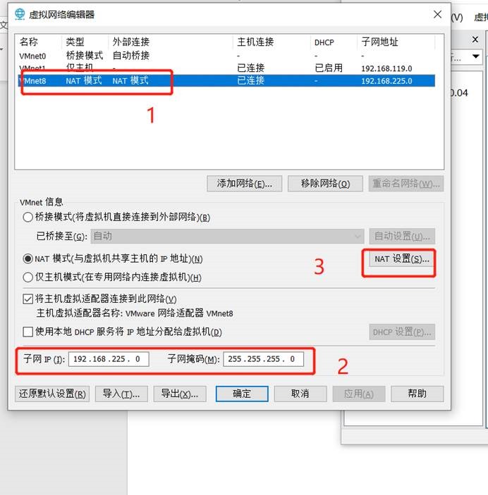 打开VMWare workstation—编辑—虚拟网络编辑器,