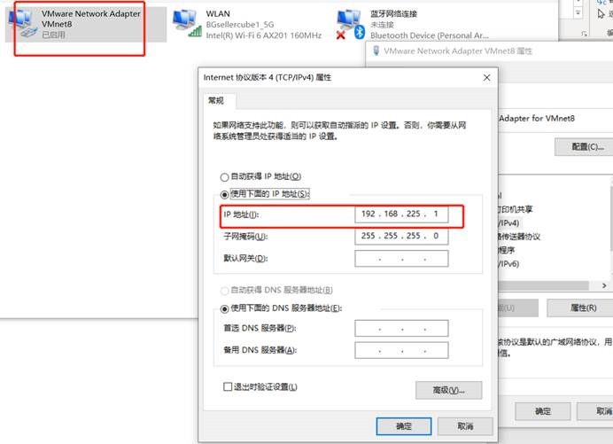 所用1,2,255不用,其余ip,随便分配,我这里配一个192.168.225.3
