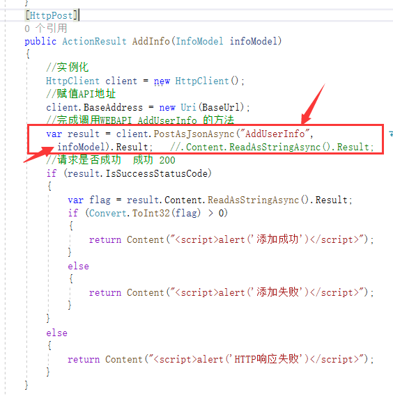 PostAsJsonAsync:post是传输的方式 json是这个值的类型,Async是异步。(就是声明)