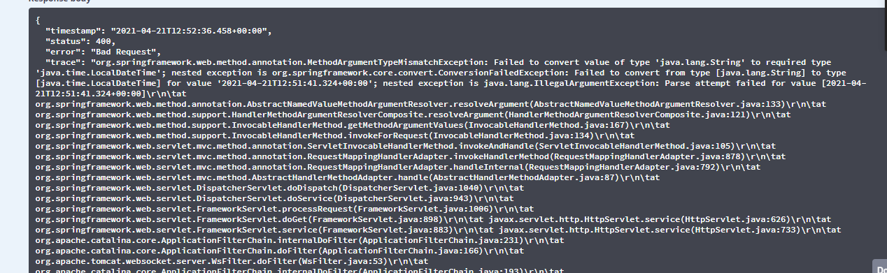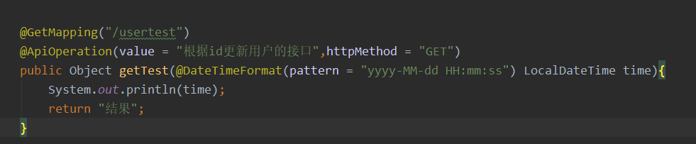 会发现,前端给的是String类型,而你要的却是LocalDateTime类型,所以无非匹配,所以在入参的时候,要用@DateTimeFormat 注解格式化参数。