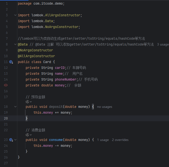 使用@Data注解之后可以生成getter/setter/toString/equals/hashCode等方法