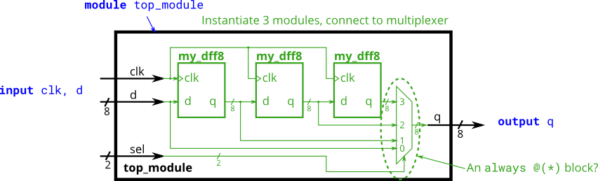 Verilog 习题笔记_实例化模块&多路复用器