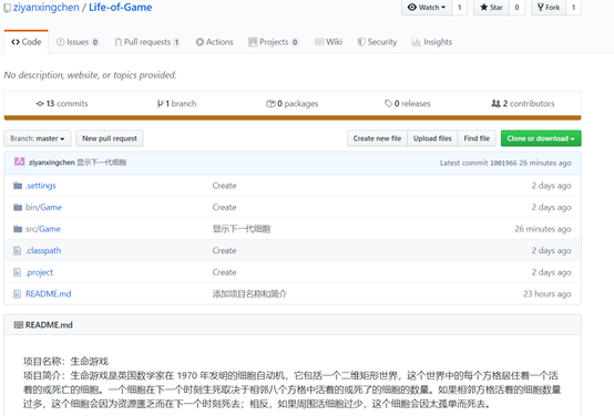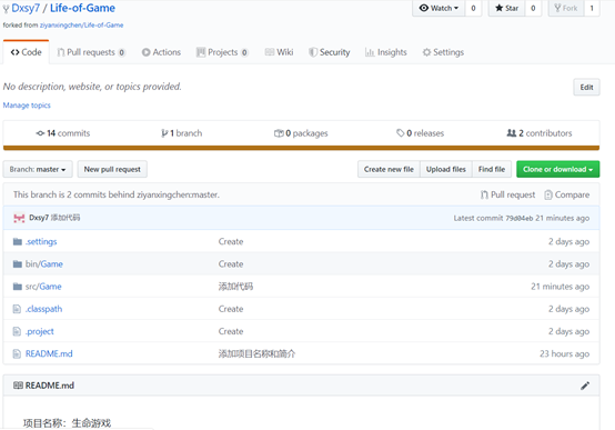 本次结对编程实验的源仓库地址为https://github.com/ziyanxingchen/Life-of-Game/tree/master/src/Game,我的GitHub仓库地址为https://github.com/Dxsy7/Life-of-Game。