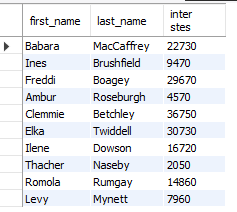 order by first_name; // 然后将查找出来的数据 按照first_name 进行排序(首字母A的排在前面,首字母Z的排在后面)