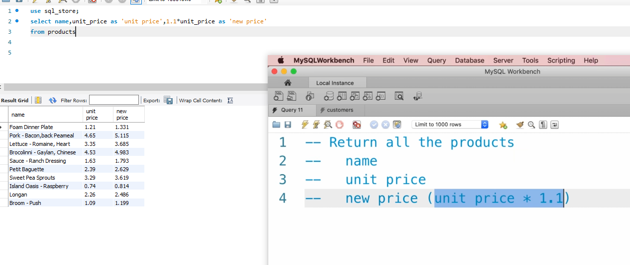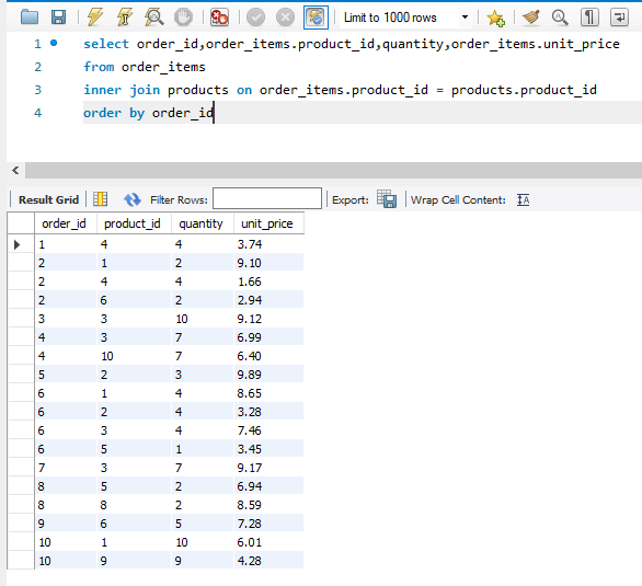 如果使用了别名: from order_items oi 则之后的情况下都要使用oi作为order_items的别名,不然会报错!!