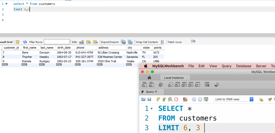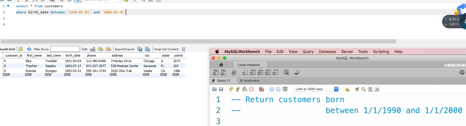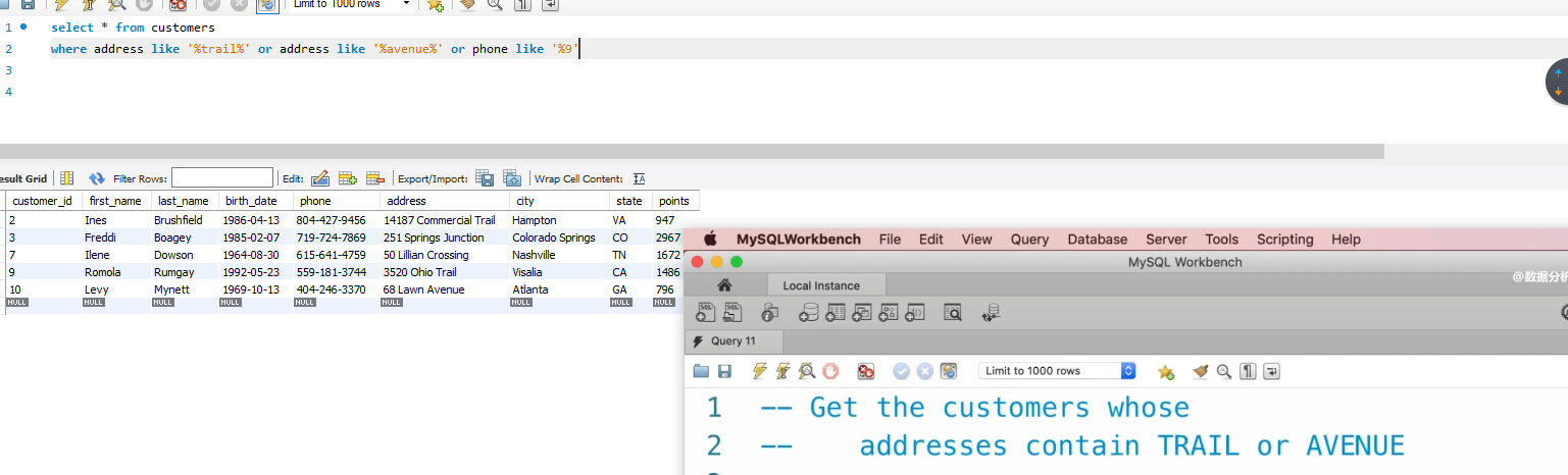 where last_name like 'b%' :意思是从customers这个表中,选出last_name 是以b开头的人的选项!而且是任意长度的字符串