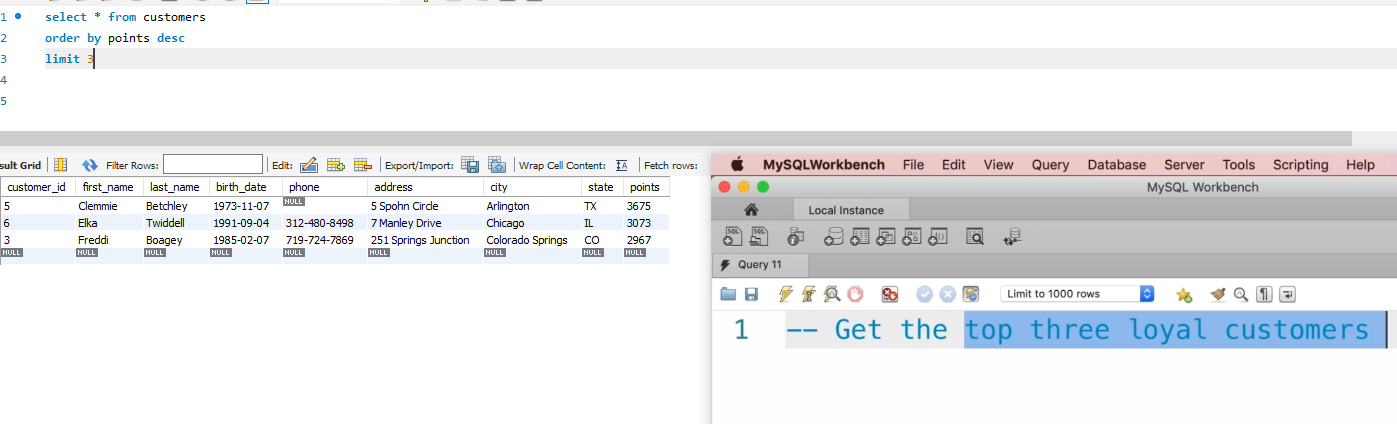 找到最忠实的三位客户,意思是points榜上前三名的客户