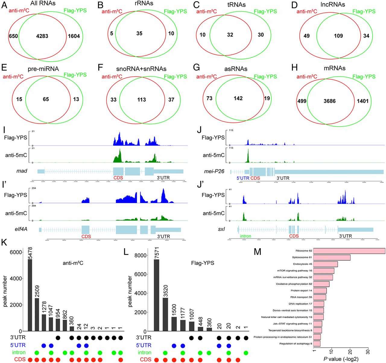 图2:YPS优先与生殖细胞中带有m5C修饰的RNA结合